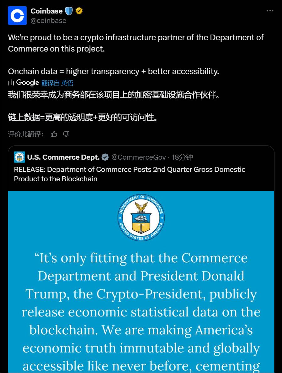 Coinbase 成为美国经济数据上链的加密基础设施合作伙伴
