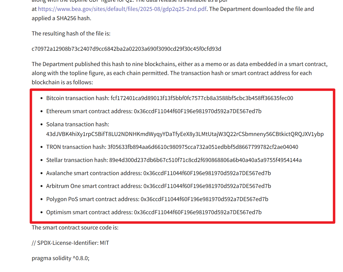 美国商务部:美国政府已在比特币、以太坊、Solana 等链上公布了最新的 GDP 数据