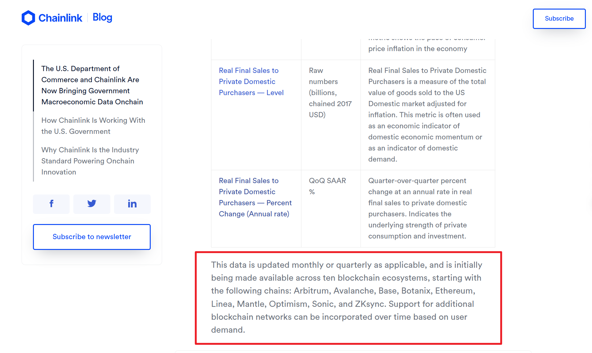 深潮 TechFlow 消息,8 月 28 日,据 Chainlink 消息,美国 GDP 上链将由 Chainlink 提供支持,该数据每月或每季度更新一次,最初将在十个区块链生态系统中提供。