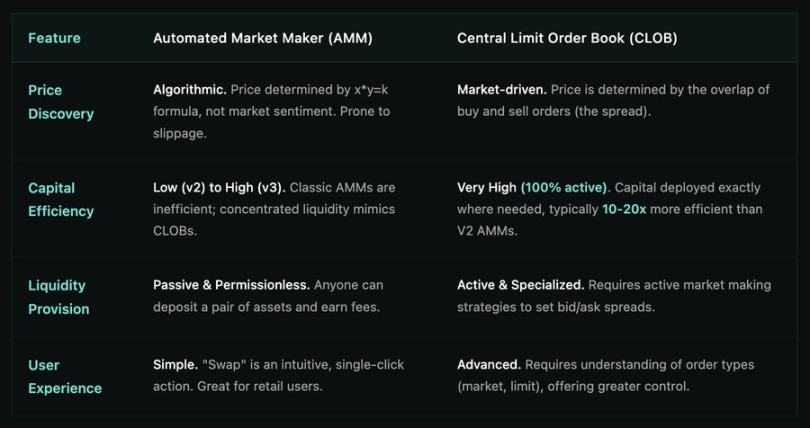 然而随着 DeFi 从早期采用者的利基市场成熟为一个寻求吸引机构资本和专业交易者的并行金融系统,其基础设施也必须成熟。中央限价订单簿为做市商提供了无与伦比的资本效率、精确的价格控制,以及复杂交易策略所需的精细控制。