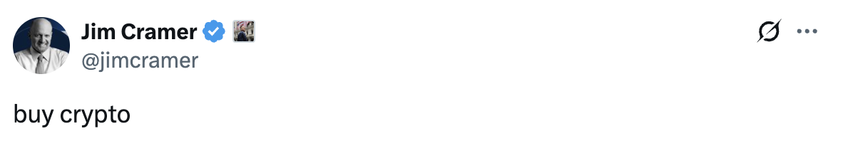 深潮 TechFlow 消息,9 月 29 日,CNBC的Mad Money节目主持人Jim Cramer发文表示「购买加密货币」
