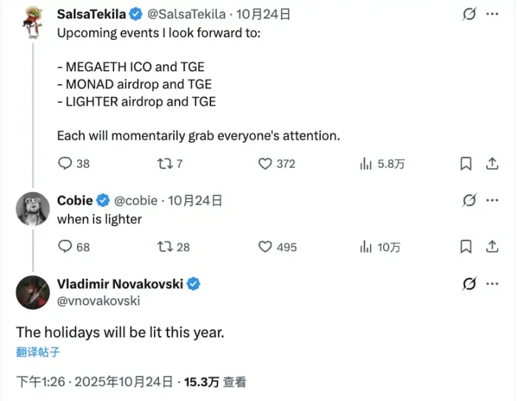 2、 Lighter CEO 暗示 Lighter 空投节点在大节日