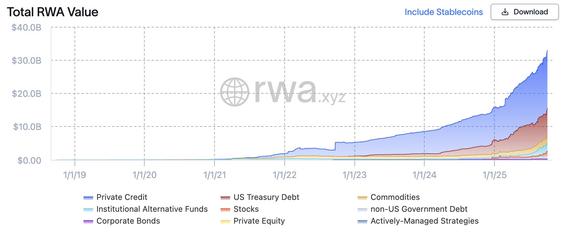 深潮 TechFlow 消息,10 月 5 日,据 rwa.xyz 数据,过去 30 天内,链上 RWA(现实世界资产)总价值上涨 13.35%,已突破 330 亿美元。