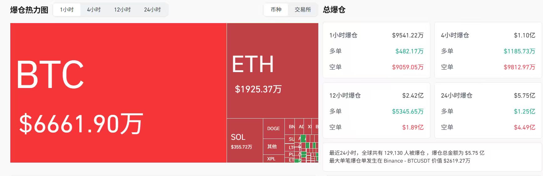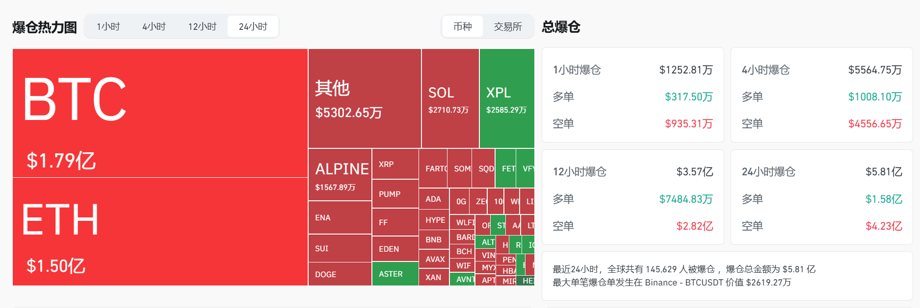 过去 24 小时全网爆仓 5.81 亿美元,主爆空单