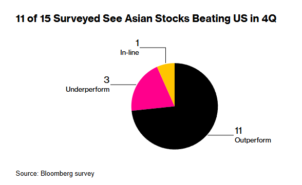 深潮 TechFlow 消息,10 月 2 日,据金十数据报道,最新机构调查显示,基于更具吸引力的估值水平和盈利前景,亚洲股市本季度有望跑赢美股。