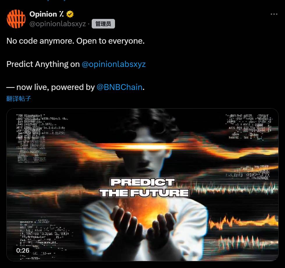 预测市场 Opinion:已面向所有用户开放,无需邀请码