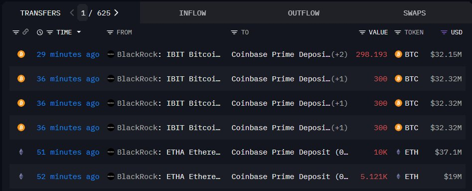 深潮 TechFlow 消息,11 月 3 日,据 Onchain Lens(@OnchainLens)监测,贝莱德在过去一小时内向 Coinbase 存入 1,198 枚 BTC,价值 1.29 亿美元,以及 15,121 枚 ETH,价值 5,610 万美元。