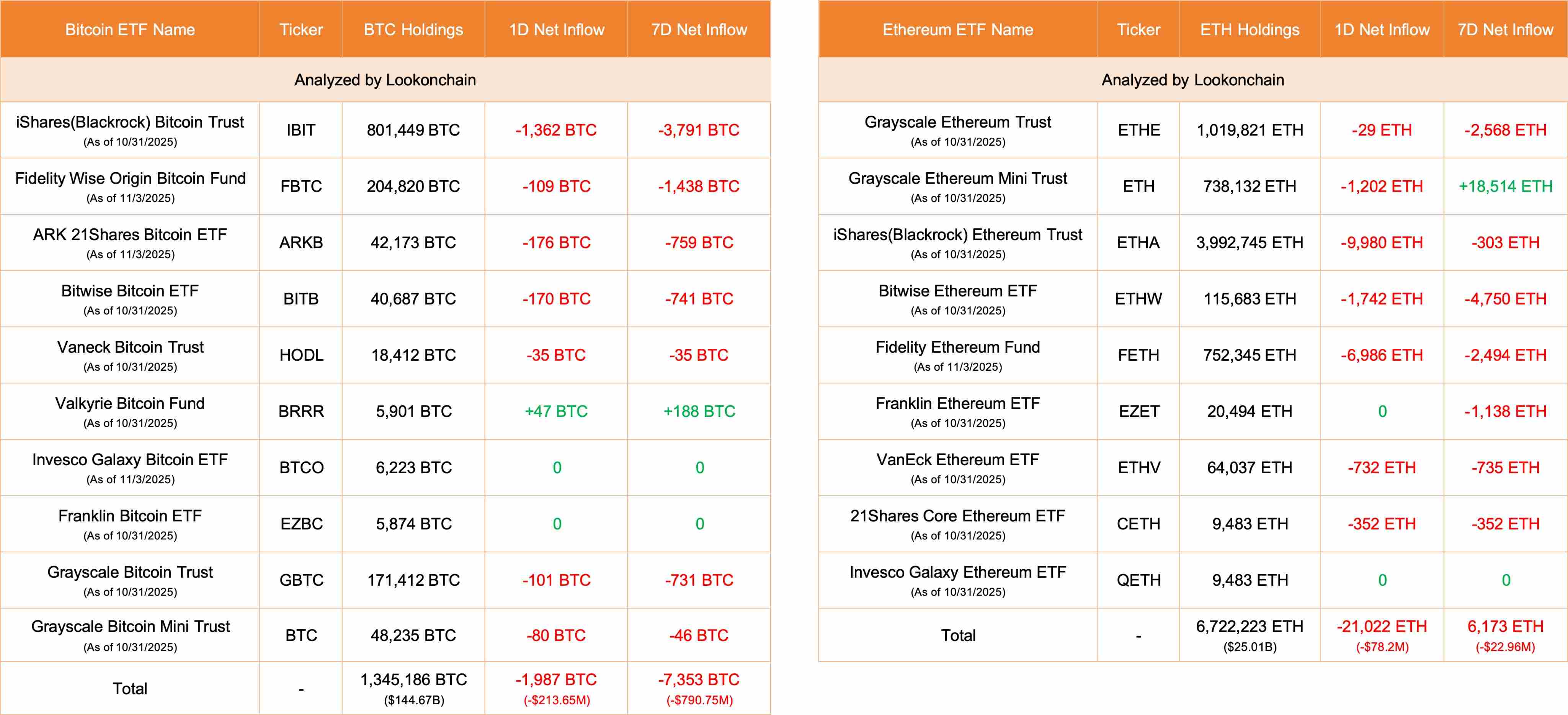 深潮 TechFlow 消息,11 月 3 日,据 Lookonchain 监测,截止于发稿,今日 10 只比特币 ETF 净流出 1,987 枚 BTC(价值 2.1365 亿美元),9 只以太坊 ETF 净流出 21,022 枚 ETH(价值 7,820 万美元)。