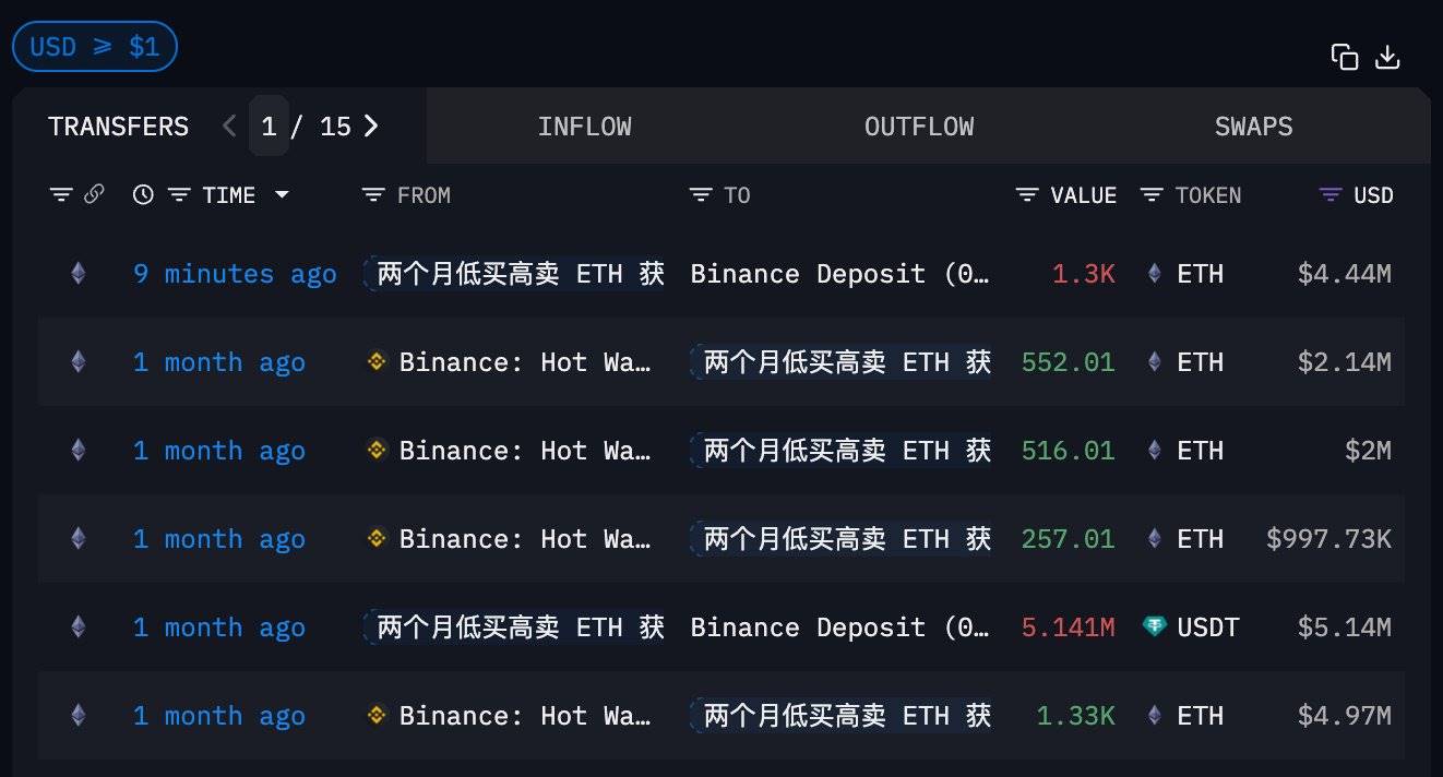 深潮 TechFlow 消息,11 月 12 日,据链上分析师 Ai 姨(@ai_9684xtpa)监测,波段巨鲸 0x69b…0e378 在 10 分钟前出售 1300 ETH,亏损 59.7 万美元。该巨鲸曾于 10 月 14 日至 18 日期间以均价 3805.6 美元建仓 2655 ETH,目前剩余 1355 枚 ETH 仍浮亏 48.7 万美元。据监测,这部分 ETH 曾在高点时浮盈 214.2 万美元。