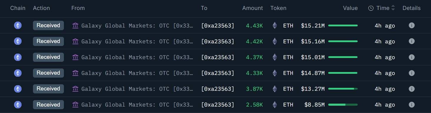 深潮 TechFlow 消息,11 月 12 日,据 Onchain Lens(@OnchainLens)监测,一个新创建的钱包从 Galaxy Digital 接收了 24,007 枚 ETH,价值 8,204 万美元,Onchain Lens 分析称,该钱包可能属于 Bitmine。
