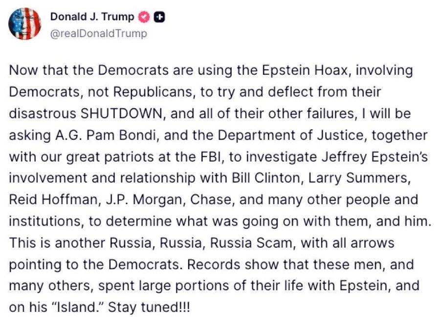 因此,当特朗普发布关于爱泼斯坦(Epstein)网络的帖子,并明确提到摩根大通(而非单独指向某些个人)时,这并不是一种修辞上的夸张。他将这个体系中最核心的机构直接拉入了叙事框架之中。