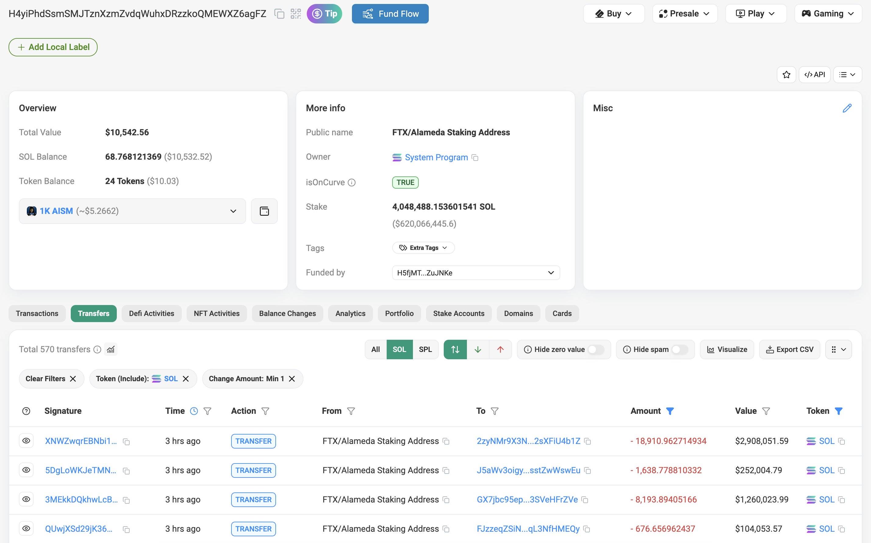 深潮 TechFlow 消息,11 月 13 日,据链上分析师余烬(@EmberCN)监测,FTX/Alameda 从质押中赎回了 19.38 万枚 SOL(价值 3069 万美元),并在 3 小时前将这些代币分发转移给 28 个地址。接收 SOL 的多数地址后续会将代币转入 Coinbase 或 Binance 交易所。