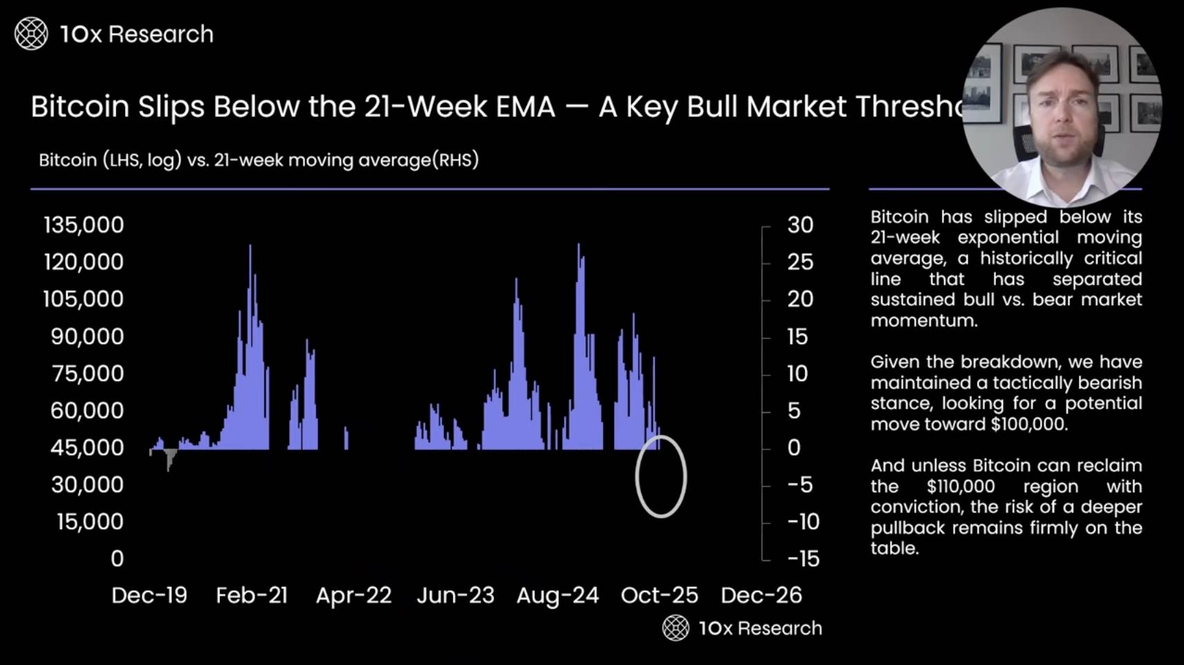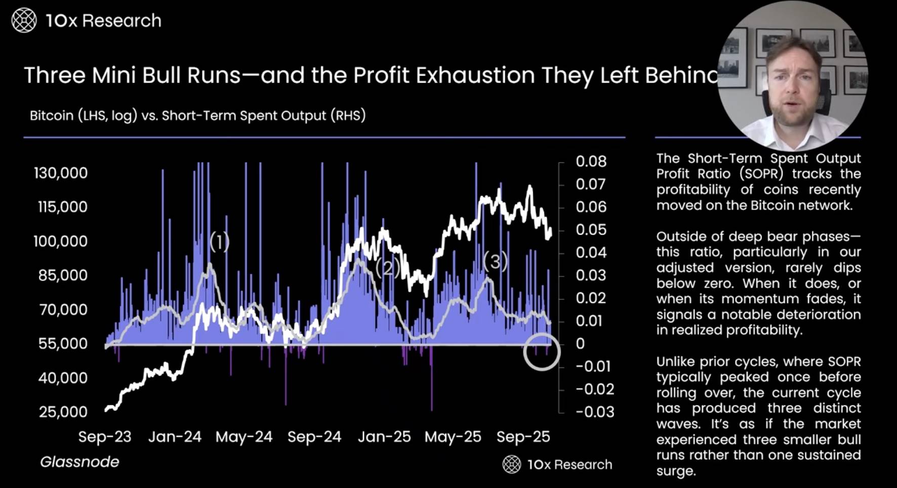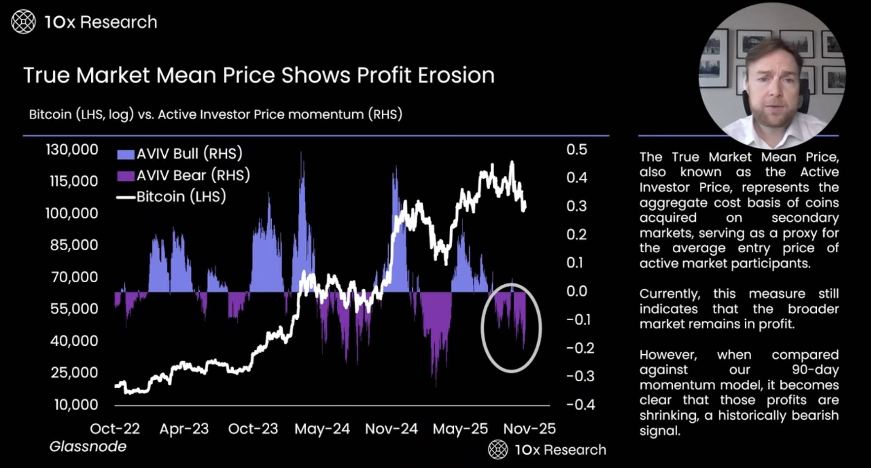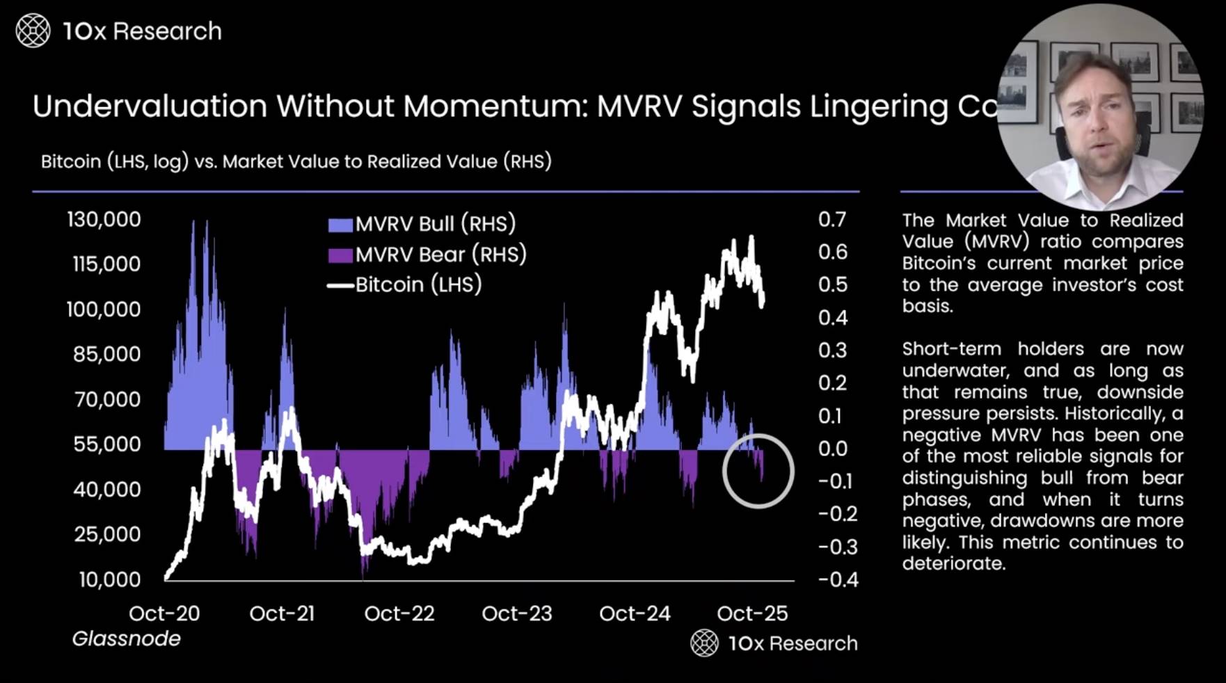 深潮 TechFlow 消息,11 月 14 日,Matrixport 发布周度报告称,“比特币进入熊市阶段。我们长期跟踪、且多轮周期验证有效的一组指标,在本轮下行启动前已给出空头信号。当时链上与市场数据显示动能走弱,缺乏支撑反弹的实质催化。此后,比特币从当时价位明显回落,验证了信号的可靠性。