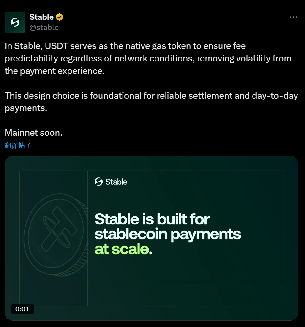 深潮 TechFlow 消息,11 月 14 日,Stable 在社交媒体发文表示:“在 Stable 上,USDT 作为原生 gas 代币,确保费用可预测性,不受网络状况影响,从而消除支付体验中的波动性。