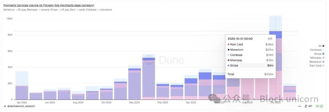 Polygon 近期的支付活动反映了这一发展势头。2025 年 10 月,Polygon 的链上转账量创历史新高,具体如下: