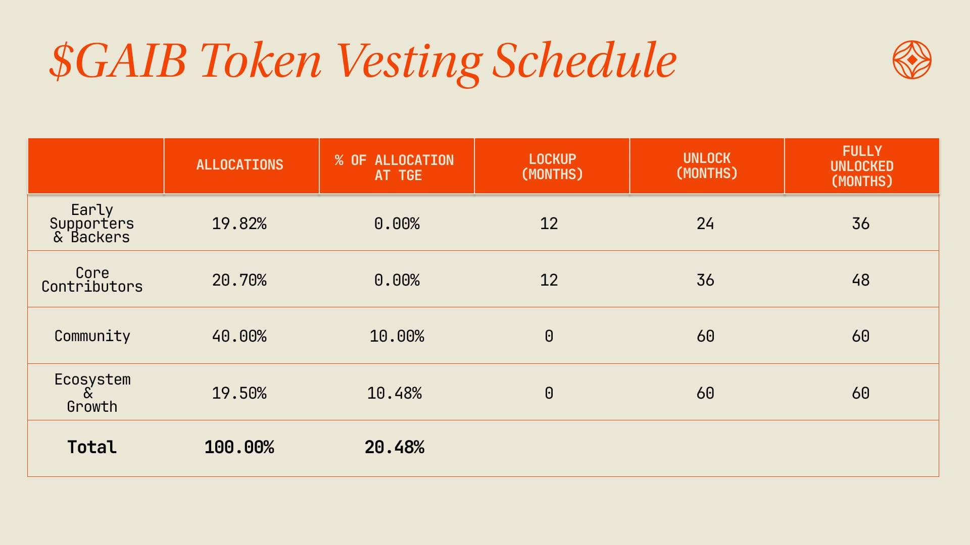 深潮 TechFlow 消息,11 月 13 日,AI 计算经济层 GAIB 成立基金会并公布 GAIB 代币经济学,总供应量上限为 10 亿枚。代币分配方案为: