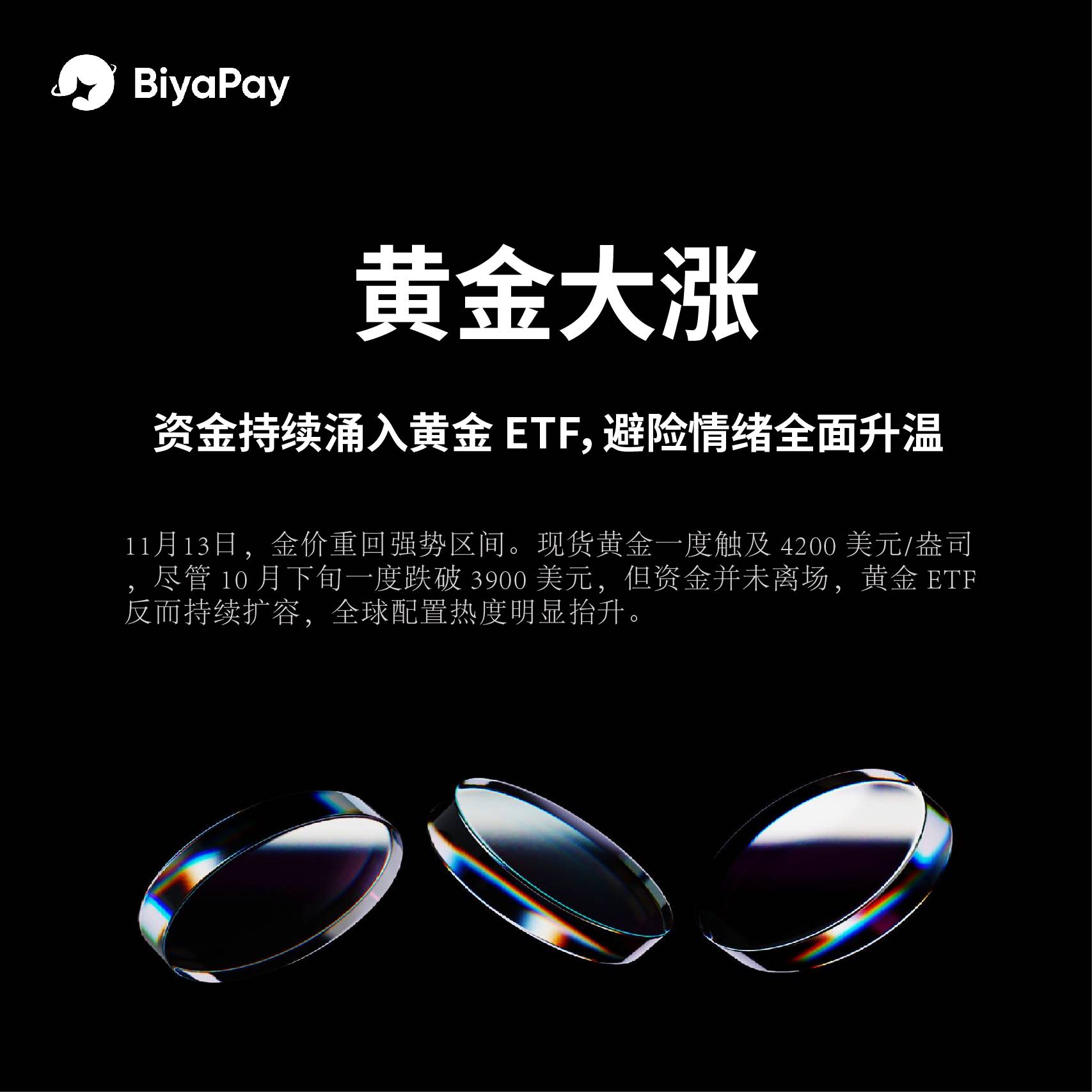 BiyaPay 分析师:黄金大涨,资金持续涌入黄金 ETF,避险情绪全面升温
