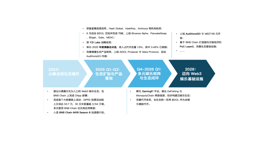 我们认为,当前的 IDOL正如 2019 年的 BNB——生态处于爆发前夜,市场尚未充分定价其潜在空间。而在未来,随着 Web3 娱乐生态的全面扩张,IDOL 将成为百亿美元价值的核心载体。